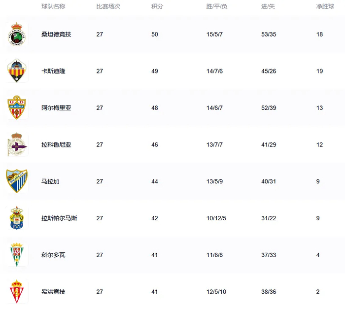 阿尔梅里亚目前在西乙的为退排名 ,
